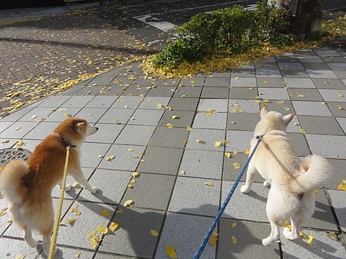 そして、歩道には、イチョウの葉がいっぱい、、、
