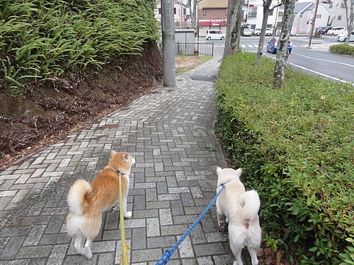朝のお散歩も、座り込むのを、だましだまし