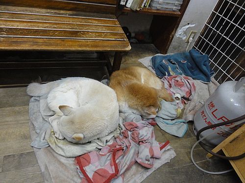 昨夜の、お家に帰る前のワンコ達の寝姿です。