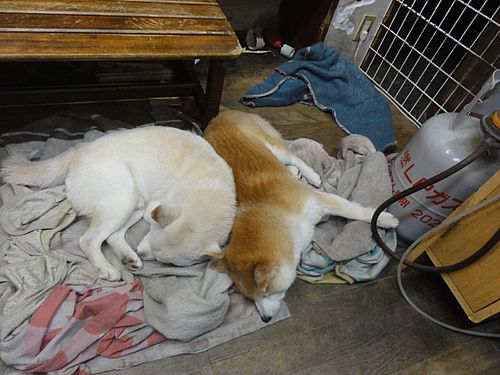 昨夜の帰る前の、ワンコ達の寝姿です。