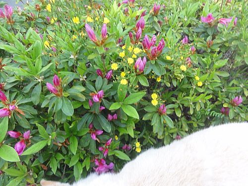 敷物を、ヨイショヨイショと、シロ君のそばへ。