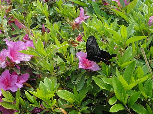 ツツジの花に、アゲハチョウがとまっていたよ。