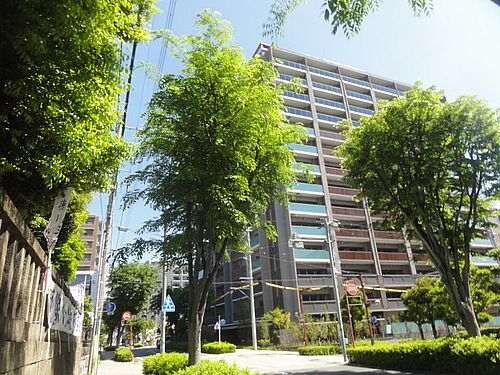 五社神社の前の高層マンション。