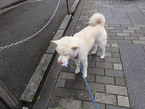 あれ、シロ君、何かくわえてる。