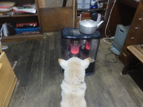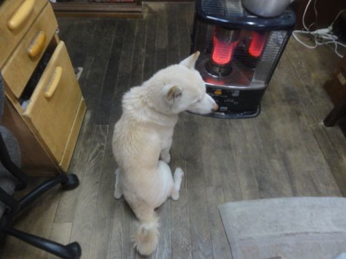 シロ君は、ストーブが大好きです。(寒がり)