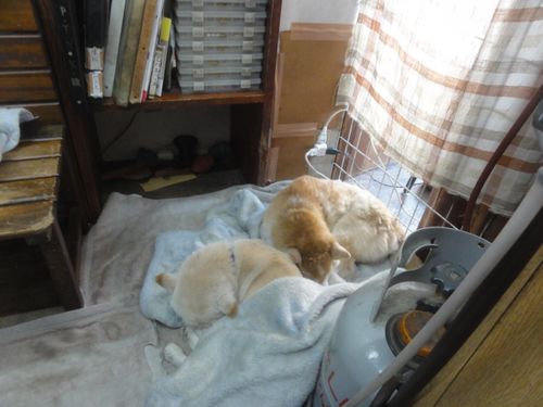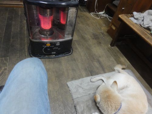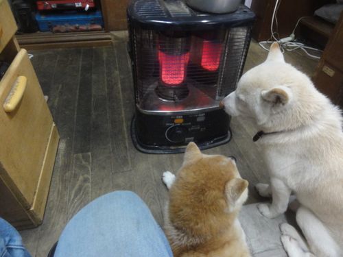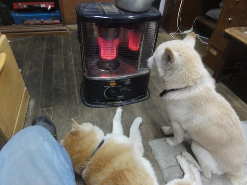 午後、ストーブをつけると、すぐに、シロ君が寄ってきて、