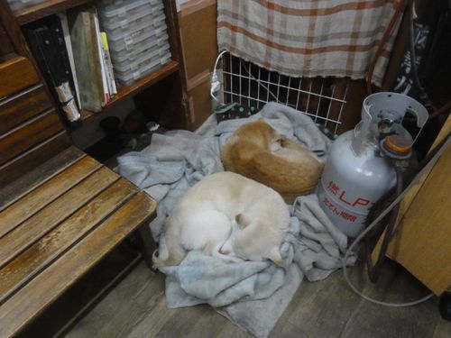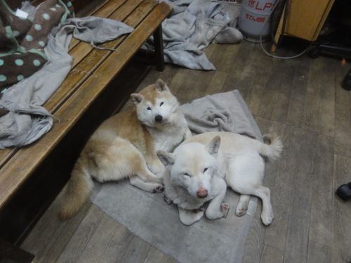 首を長ーくして、晩御飯待ってるワンコ達です。
