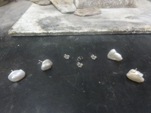ゆうこが注文してくれた、変形の淡水パールのピアス。