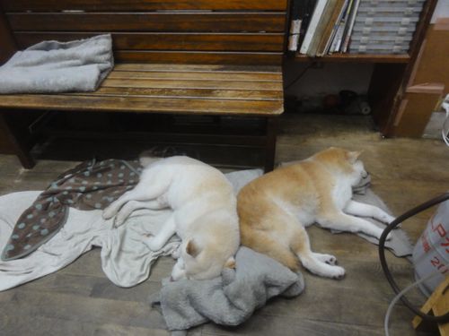 昨夜の、帰る前のワンコ達の寝姿。