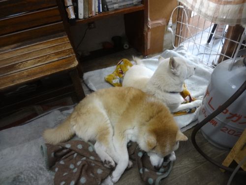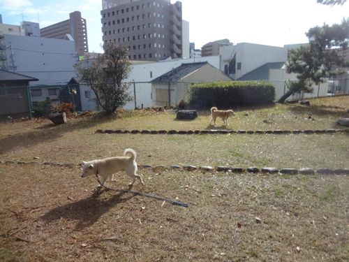 誰もいない公園で、ワンコ達と日向ぼっこしている