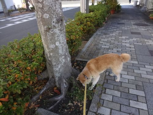 いつもの所で、チャロ君、葉っぱ食べ始めました。