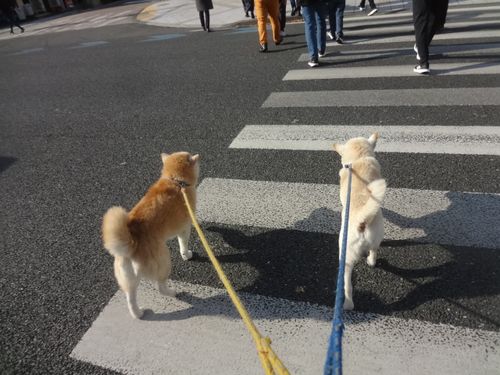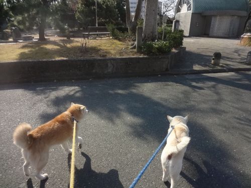 夕方の浜松城公園の散歩は、2匹ずつ。