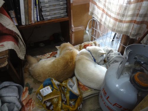 ワンコ達と日向ぼっこして、ホッコリ、、、