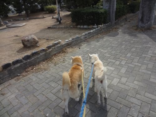 今日も仲良く、朝のお散歩。