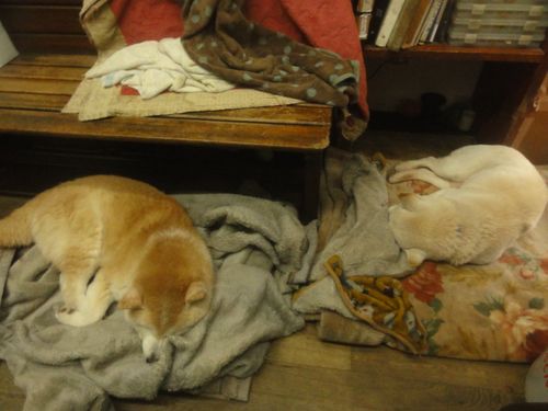 仕事の手を休めて、ワンコ達の寝姿を見ているのが、