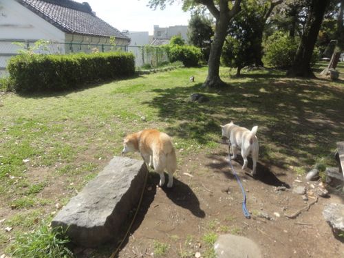 午前中のお散歩時は、まだとってもいい天気、、、